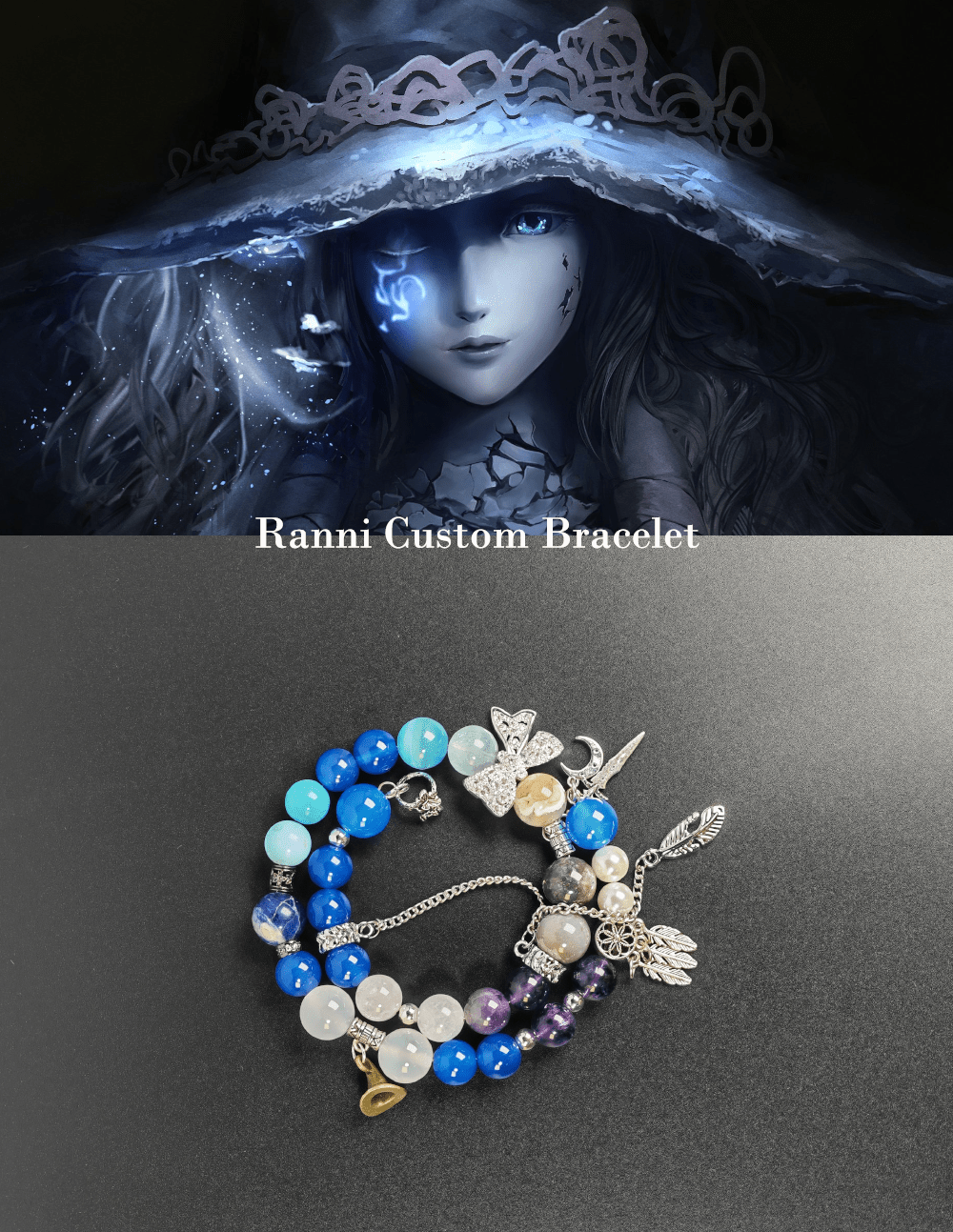 Channel the enigmatic charm and cosmic destiny of Ranni the Witch with this meticulously crafted bracelet. Every element is chosen to tell the story of the Lunar Princess, from her chilling demeanor to her celestial ambitions.