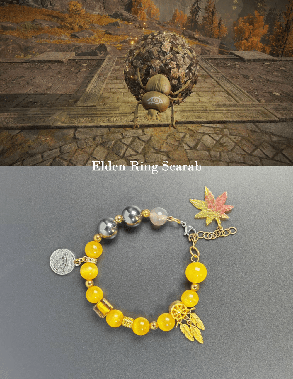 Channel the thrill of the hunt with this bracelet, inspired by the elusive and invaluable Golden Scarabs of the Lands Between. Worn as a tribute to every Tarnished who’s chased one of these glowing critters across the map.