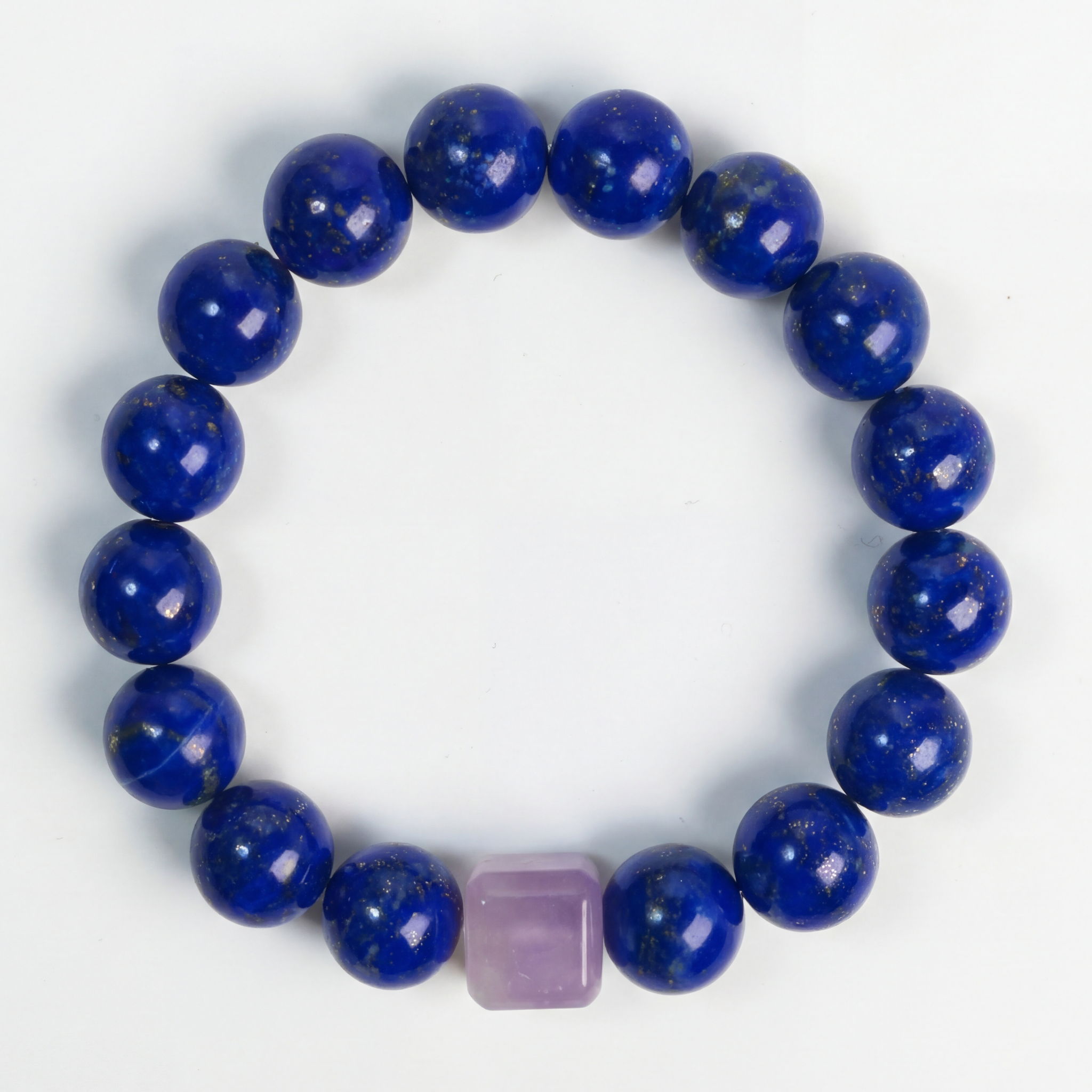 The Design A brilliant, empowering composition of deep blue Lapis Lazuli and a focal Amethyst. The star-dusted appearance of the blue stones contrasts vibrantly with the spiritual purple hues.