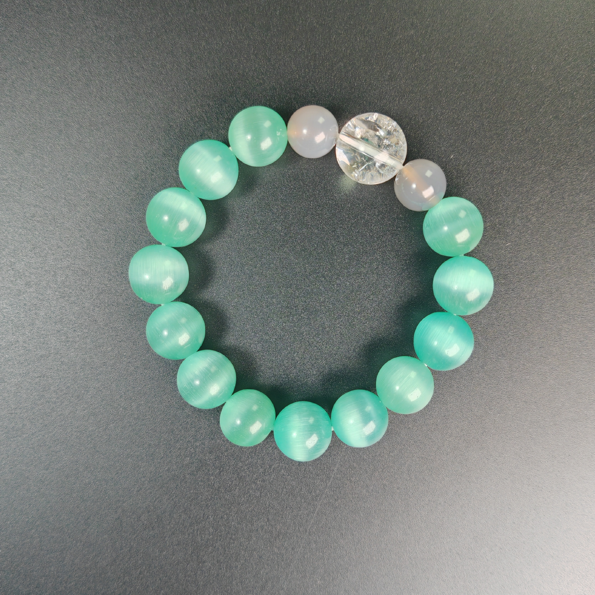 Grey Agate provides a grounding contrast, representing the quiet strength and subtle resilience that defines her journey.